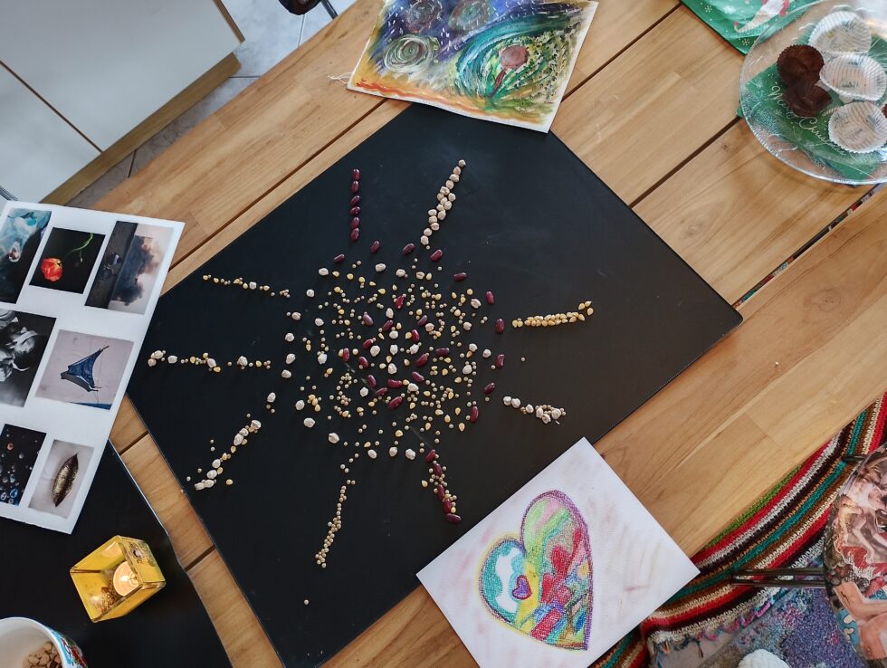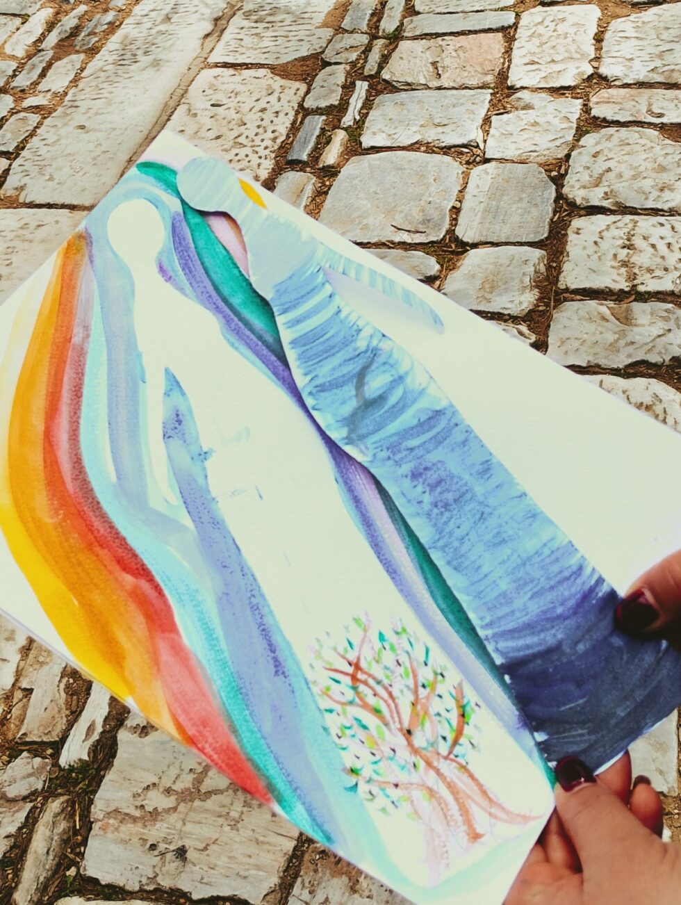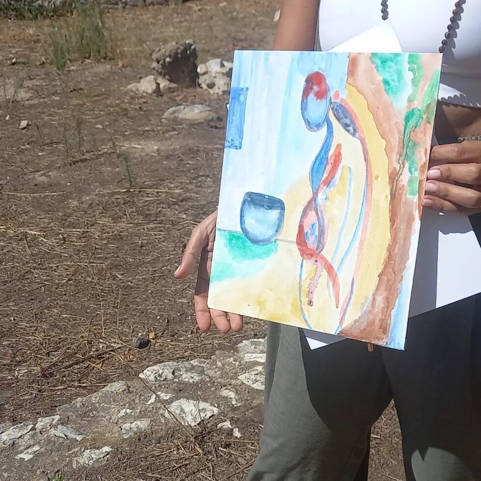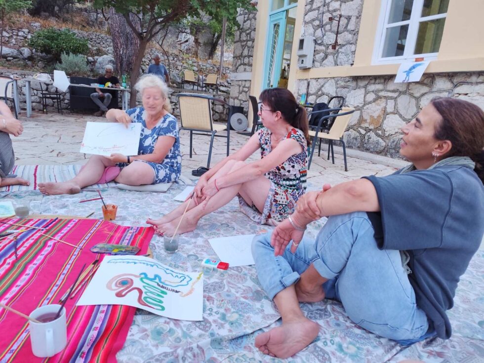 Με το χέρια και όλο μου το σώμα σαν δημιουργικό οδηγό συνδέομαι με το ασυνείδητο και ανασύρω τις εικόνες και σύμβολα μου · τα ερμηνεύω σωματικά, νοητικά, ψυχικά και συναισθηματικά και εμπλουτίζω την αίσθηση του εαυτού μου.