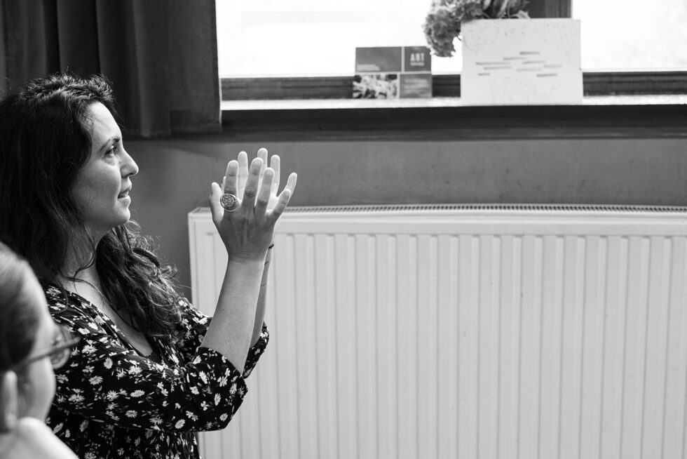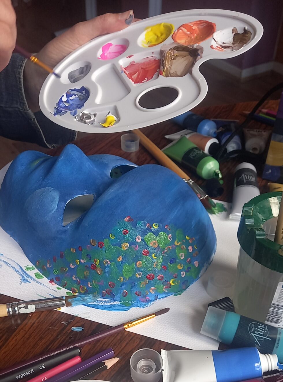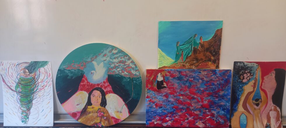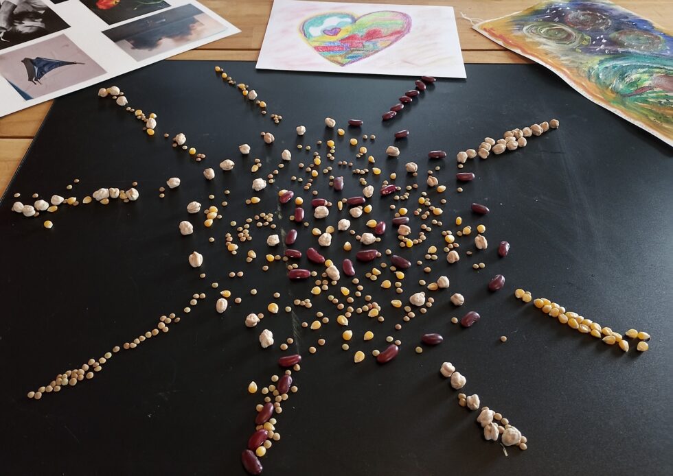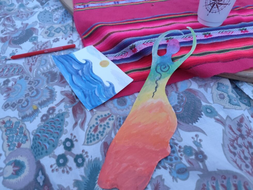 Με το χέρια και όλο μου το σώμα σαν δημιουργικό οδηγό συνδέομαι με το ασυνείδητο και ανασύρω τις εικόνες και σύμβολα μου · τα ερμηνεύω σωματικά, νοητικά, ψυχικά και συναισθηματικά και εμπλουτίζω την αίσθηση του εαυτού μου.